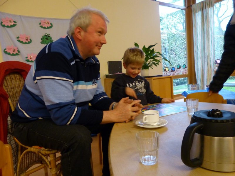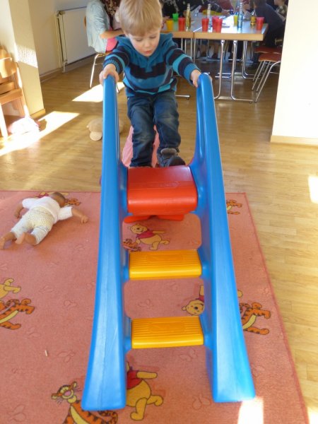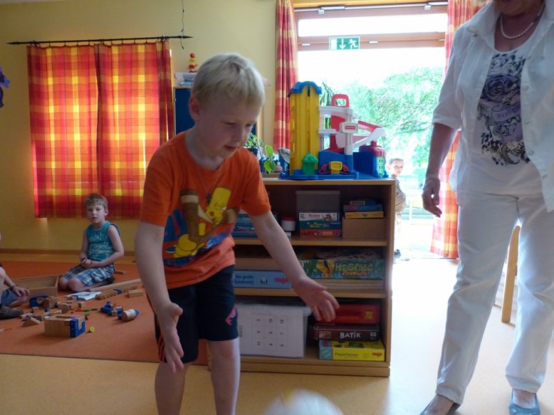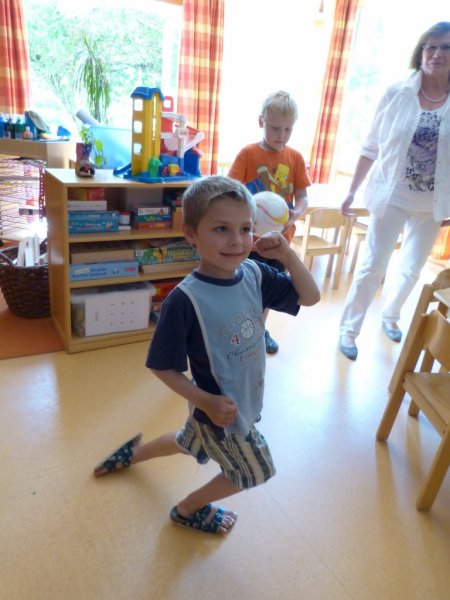 Am 21.05.2012 besuchten die AWO Senioren nun, nachdem die Kinder zweimal die Senioren in der AWO Tagesstätte besucht hatten, die Kinder der AWO Kita Villa-Kunterbunt. Ein kleines Mädel machte den Empfangschef und begrüßte jeden Besucher. Bunt durcheinander nahmen dann alle Gäste und Kinder, in dem Raum der blauen Gruppe Platz. Bei Kaffee und Kuchen erklärten die Kinder den Senioren Ihre Tagesstätte. Dann alle raus, es ist super Wetter. Ballspielen, Matschanlage und Erinnerungsfotos stehen nun auf dem Programm. Pressefoto vor der Kletteranlage mit den Kindern und die Senioren unter der rotblühenden Kastanie waren die top Motive. Zu Guter Letzt wurde ein großer Kreis gebildet und gemeinsam das Lied alle Leute gesungen. Fazit: wieder ein gelungener Nachmittag für Kinder und Senioren.