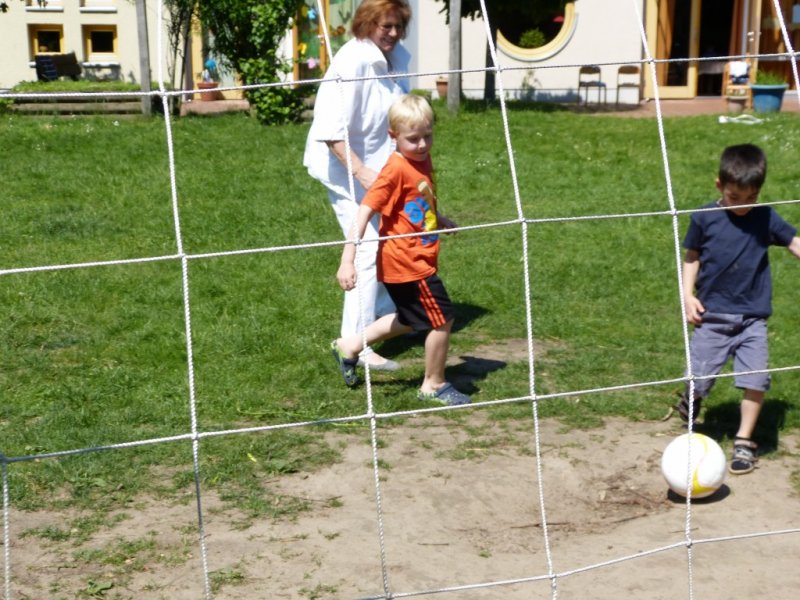 Magret Brameier konnte Sport Total als Sponsor für einen neuen Fußball gewinnen. Riesengroß war die Freude, in der AWO Kita Villa-Kunterbunt, als Magret Brameier vom AWO Ortsverein, den superleichten Lederball an die Kinder überreichte. Magret war mit den Senioren zu Gast in der Kita und hatte bei der Gelegenheit festgestellt das die Kids einen viel zu großen und zu schweren Volleyball zum Spielen hatten. Jetzt kann dank Sport Total, mit einem altersgerechten Ball gebolzt werden.