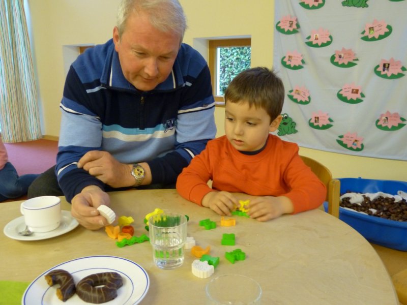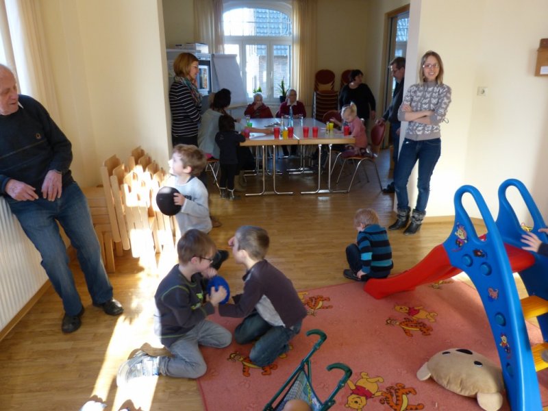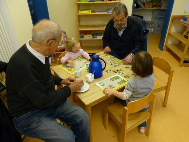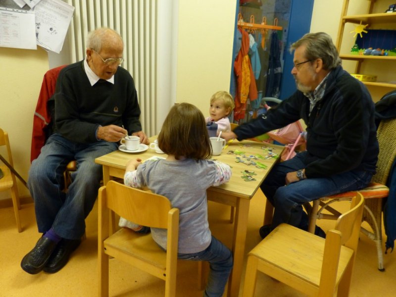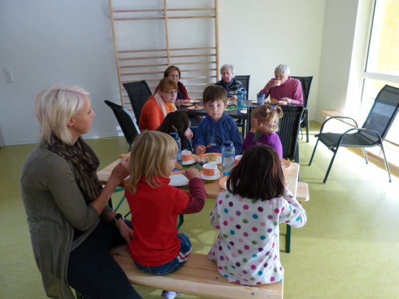 Senioren und Kita-Kinder verbrachten am 16.4.2012 einen schönen Nachmittag.