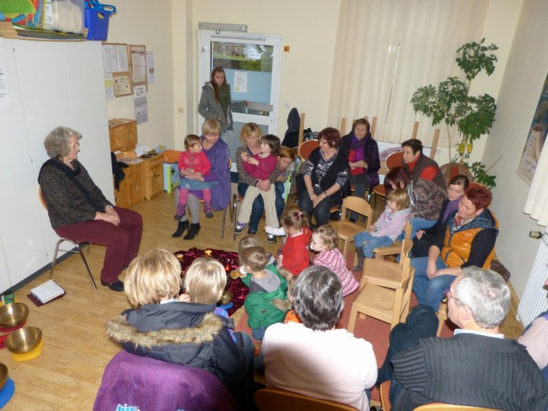 Eine gut besuchte Märchenstunde erlebten heute Kinder der AWO Kita mit Ihren Eltern & Großeltern. Im Rahmen des AWO Erzählcafe,s war Gertrud Kröger zu Gast. Kinder und Großeltern musten teilweise ihre Märchen erraten und mitsingen war auch gefordert. Mit Ihren beeindruckenden Klangschalen untermalte Sie Ihre Märchenerzählungen. In einer kurzen Pause bot der AWO Ortsverein Kekse und Plätzchen sowie Kaffee und kalte Getränke an.