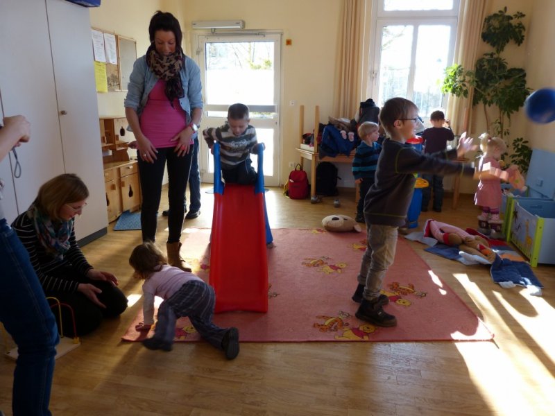 Senioren zum ersten mal zu Besuch, in der Kita am Bach