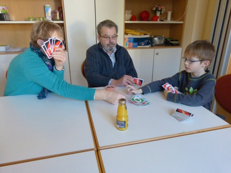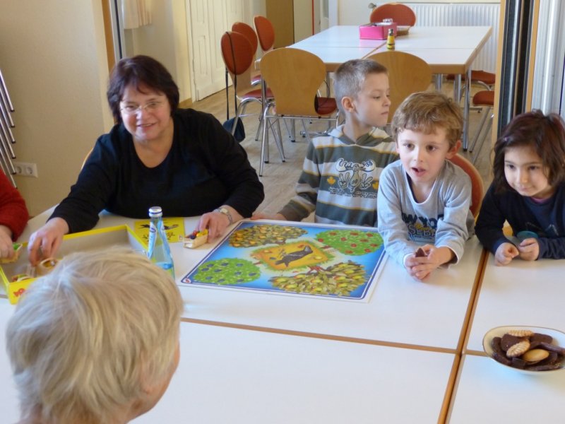 Zum wiederholten Mal besuchten Kinder der AWO Kindertagesstätte Villa Kunterbunt den Seniorentreff des AWO Ortsvereins Versmold. Sofort forderten sich Kinder und Senioren gegenseitig zu Spielen auf. Es ging hoch her bei Mensch Ärger Dich nicht, UNO und Puppen an bzw. umkleiden. So war der Nachmittag schnell vergangen und Abschied war angesagt, nachdem die Kinder noch zwei Lieder mit den Senioren gesungen hatten. Zum nächsten Treff am 21.05.2012 Fahren nun die Senioren um 14:30 in die Villa Kunterbunt.