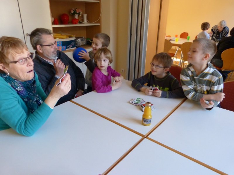 Eine Gruppe Kinder, der Kita Villa Kunterbunt, war heute beim Seniorennachmittag des AWO Ortsvereins. Fröhlich und laut ging es 1 Stunde rund. Ob beim Ballspielen, Kartenspielen oder einfach nur zuschauen. Alle hatten ihren Spaß und freuen sich schon auf das nächste Mal, wenn die Senioren zur Kita fahren.