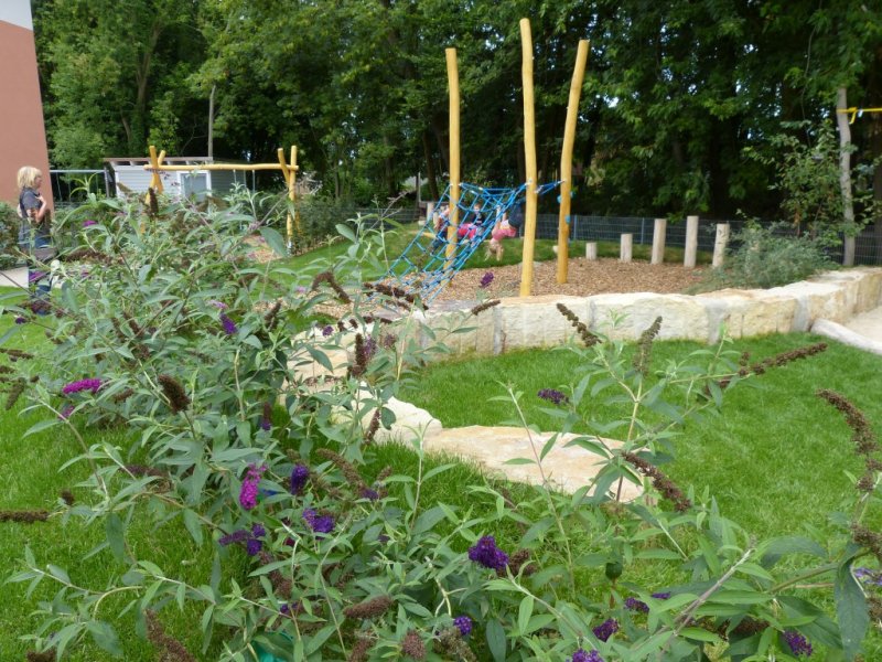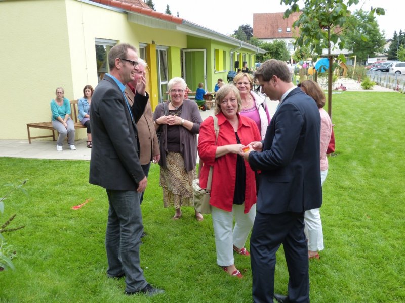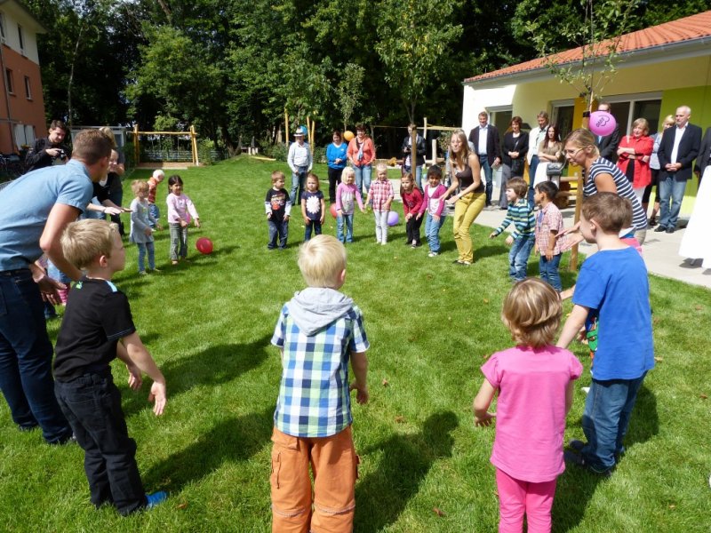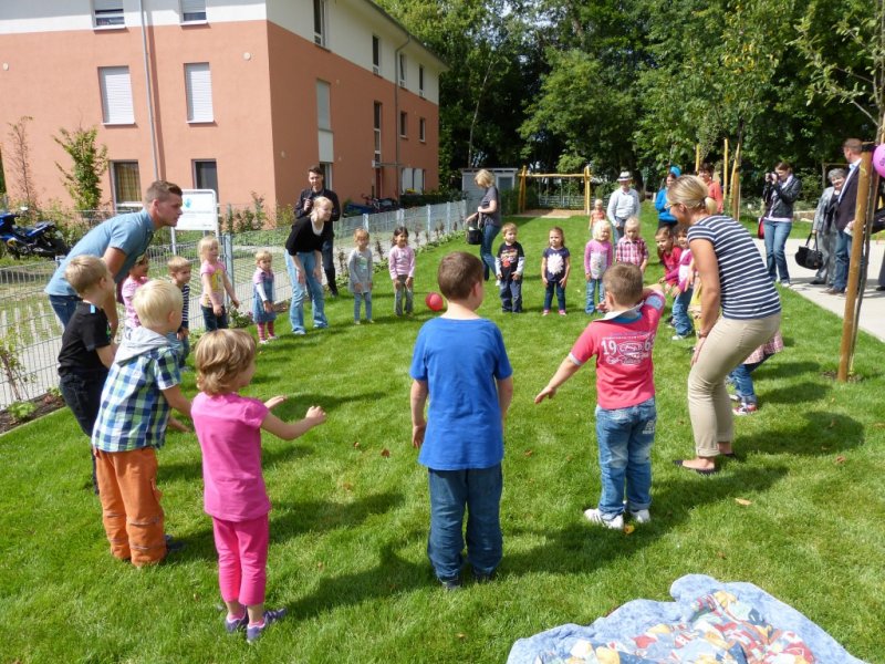 Als nächstes Haus wird zum 1. August 2013 eine zweigruppige Kindertageseinrichtung in Betrieb genommen. Der Neubau ist bereits weit fortgeschritten. In wenigen Tagen soll Richtfest gefeiert werden. „Besonderen Wert", so Thomas Euler vom Immobilien Service AWO, „werden wir auf die naturnahe Gestaltung des Außengeländes legen."