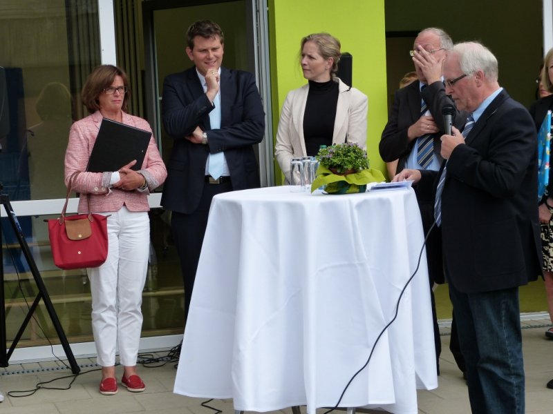 Vorstandsvorsitzender Klaus Dannhaus: „Mit 660 qm bereits vergebener Nutzfläche wird das Haus jetzt an den Start gehen." Drei weitere potentielle Mieter haben noch die Möglichkeit, sich kurzfristig für den Einzug zu entscheiden. Danach wird die Planung überarbeitet, der Bauantrag gestellt und der Neubau erstellt. Im Sommer nächsten Jahres soll dann die Eröffnung gefeiert werden.