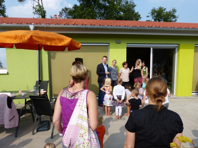 Die Belegung der 32 Plätze in der neuen Kita Am Bach für das nächste Kita-Jahr hat bereits begonnen. Einige Kinder ziehen auch von der Kita Julie-Steinfeld-Straße in den Neubau. Die Kita wird ebenso wie die Kitas Spatzennest und Villa Kunterbunt von Katrin Scheffler geleitet. Sechs bis zehn Mitarbeiterinnen gehören zum Team.